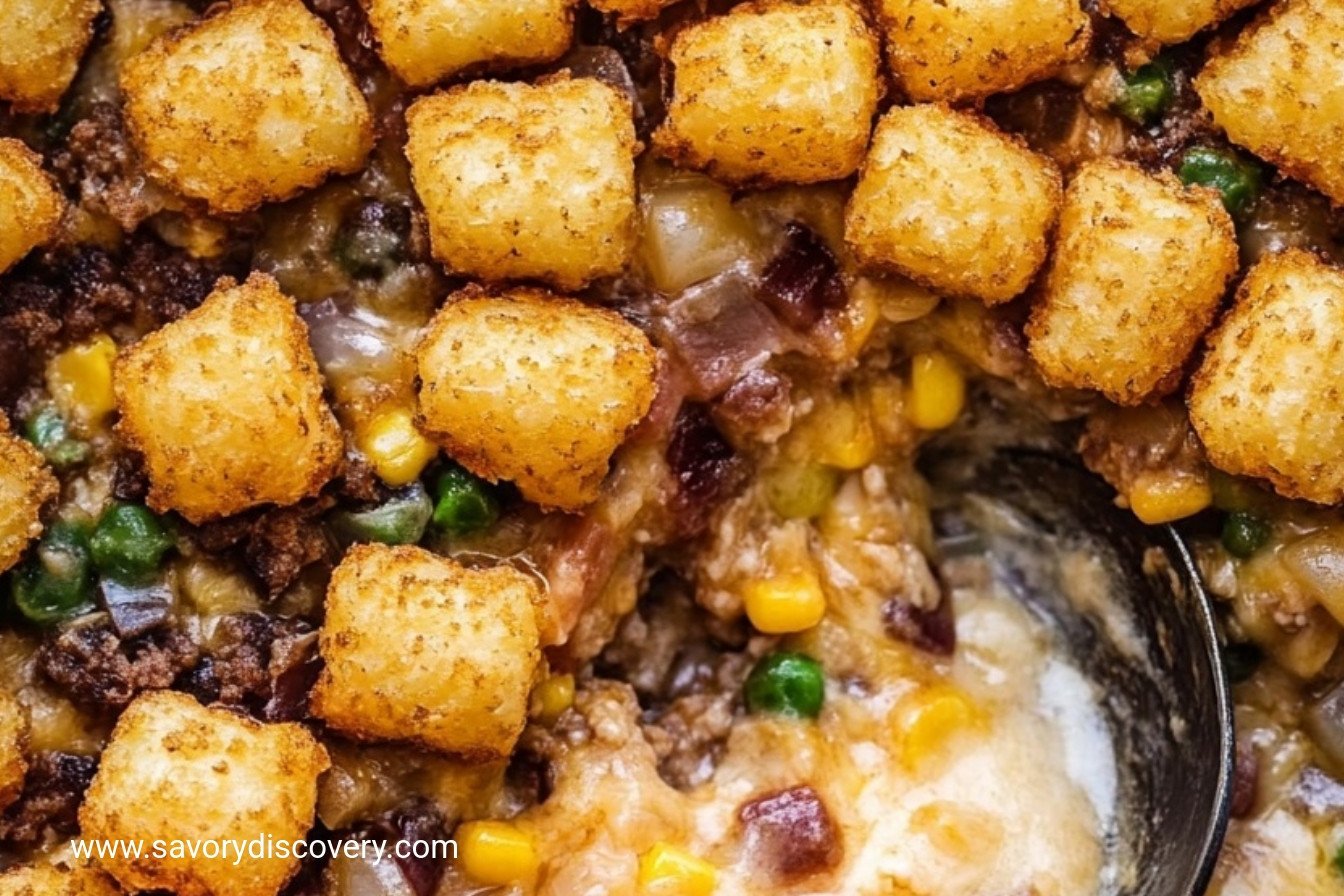 The best part is the tater tots on top. They get all golden and crispy in the oven. That crunch with the creamy filling is just perfect.