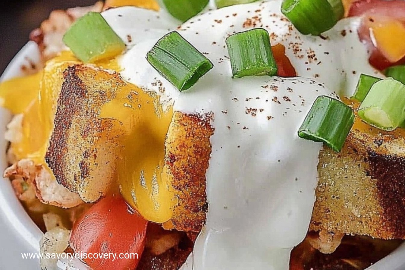 This is the best part, putting it all together! Place your crispy potatoes on a big platter. Pour that warm, gooey cheese sauce right over the top. Now, add your favorite toppings. I always go for a big dollop of cool sour cream. The contrast with the hot potatoes is just perfect. It makes the whole dish sing.