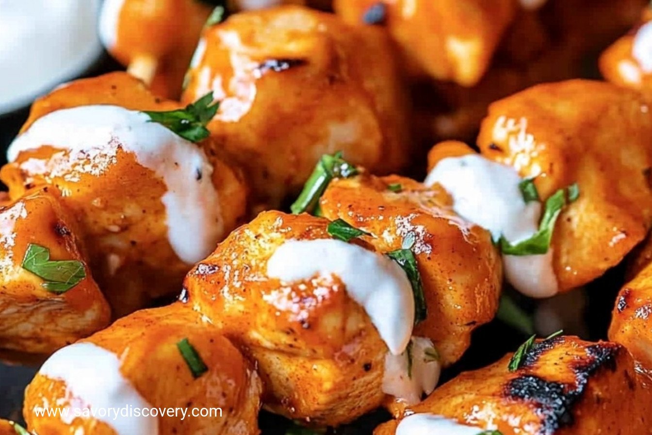 These flavorful Buffalo Ranch Chicken Skewers are a perfect appetizer or main course, featuring tender chicken coated in a zesty buffalo ranch sauce.
