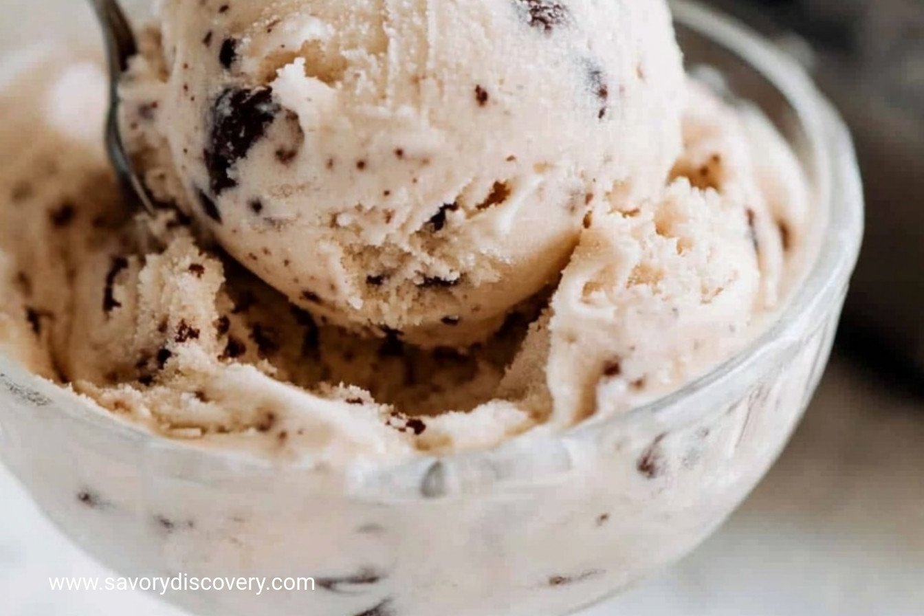 Experience the rich, creamy delight of homemade coffee ice cream studded with chocolate chips.