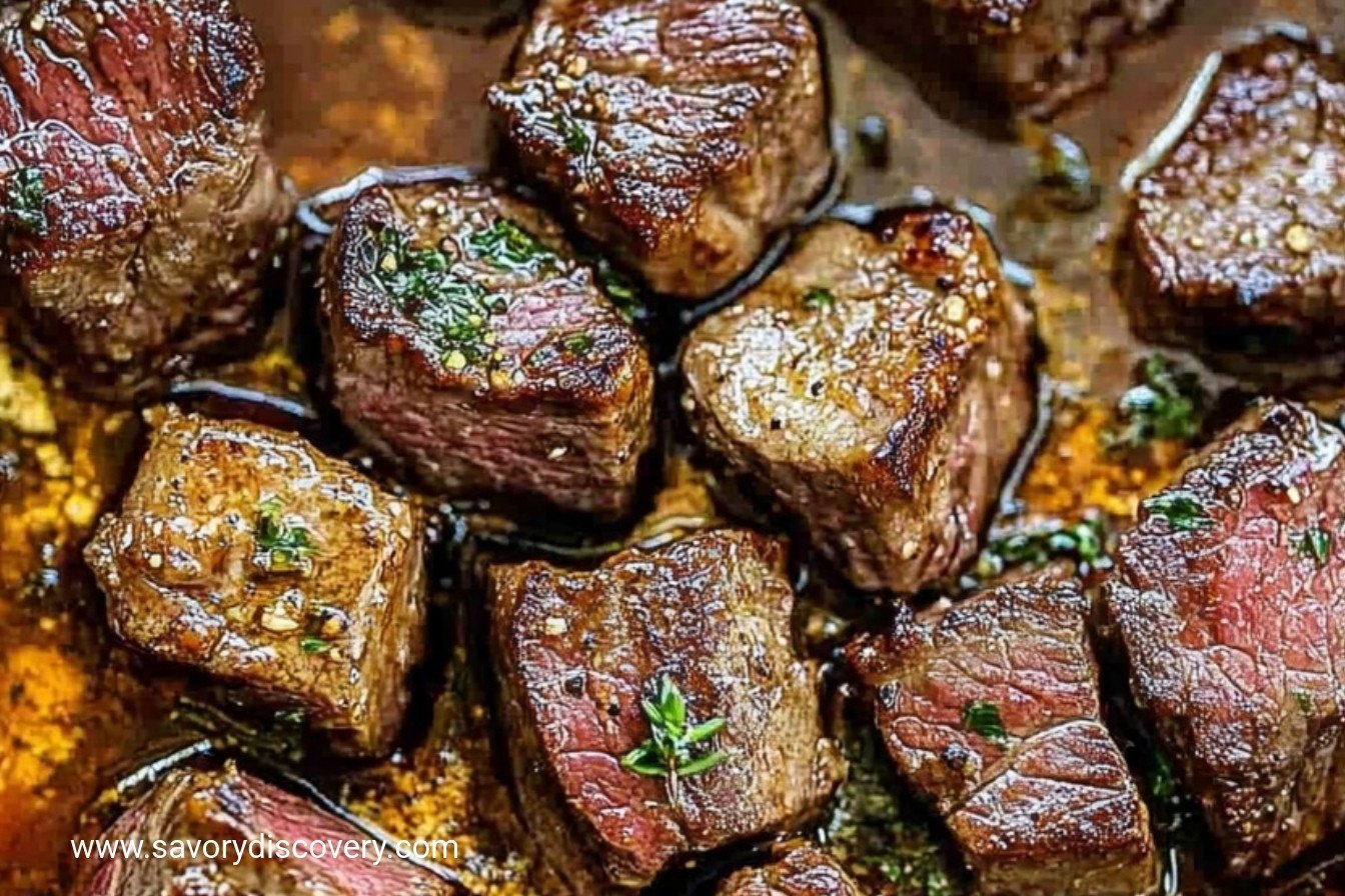Sizzling steak bites seared to perfection and tossed in a flavorful cowboy butter sauce, perfect for an appetizer or main course.