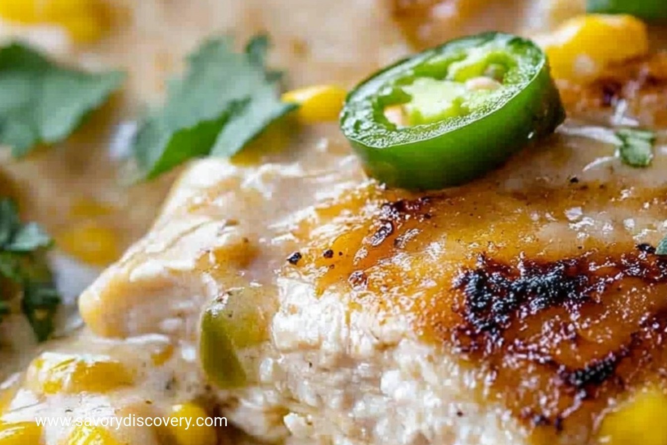 Cheesy Jalapeno Stuffed Chicken with Creamed Corn features juicy chicken breasts stuffed with a creamy, spicy cheese filling, served over a rich and flavorful creamed corn.