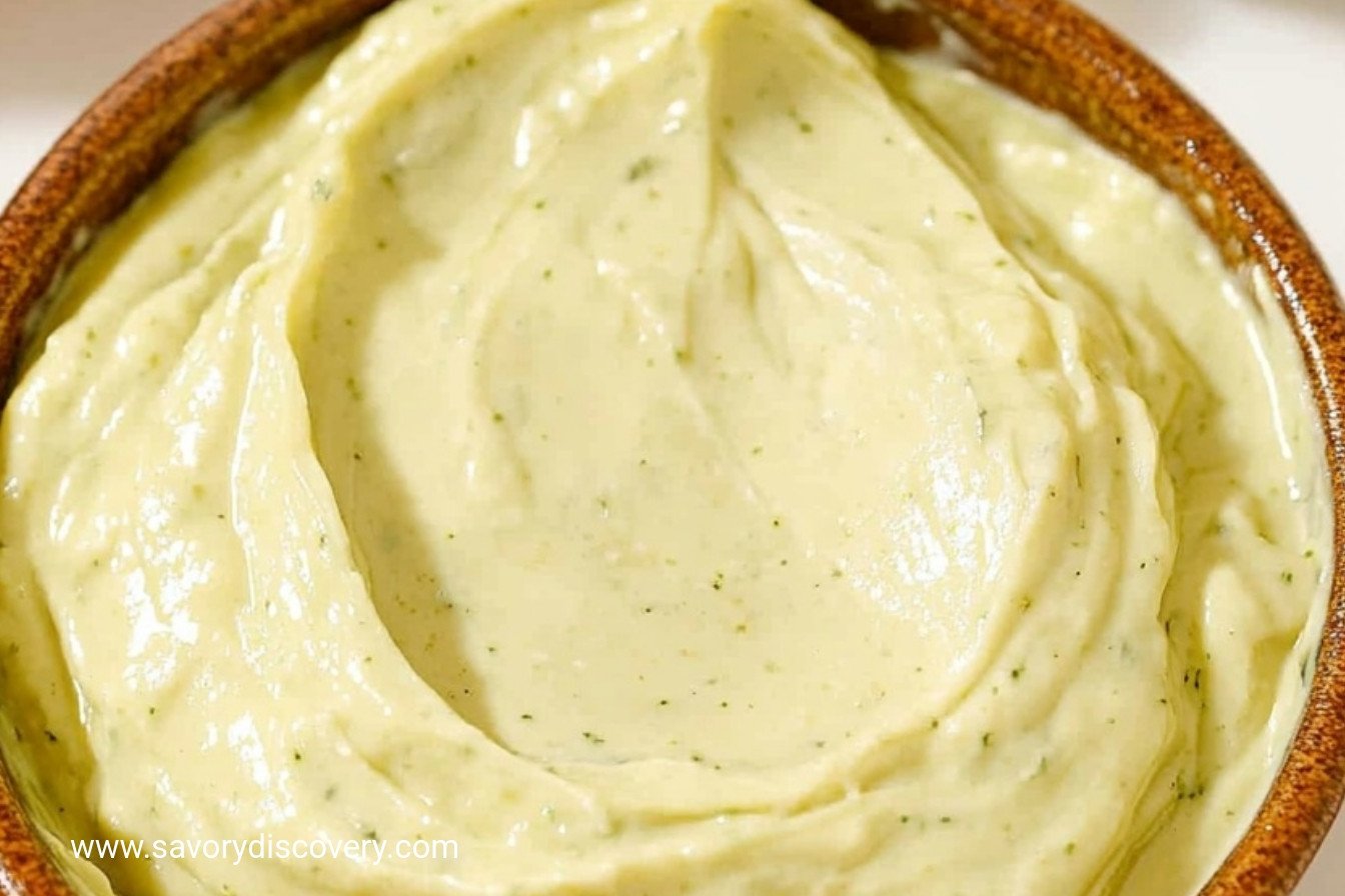 A smooth and creamy dip made with ripe avocado, mayonnaise, lime juice, and garlic. Perfect as a spread or dip.