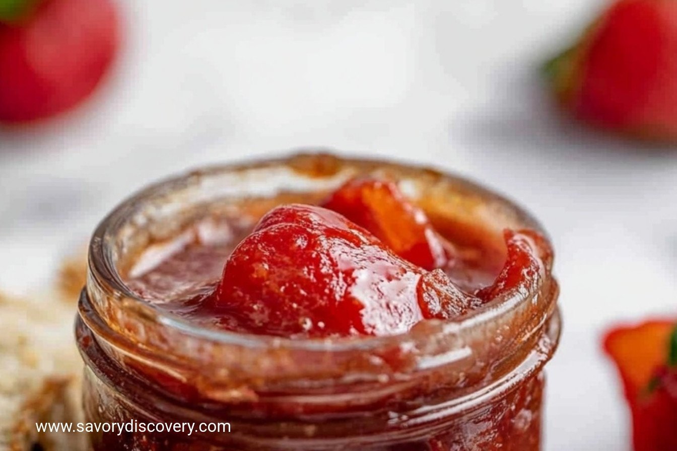 Let’s talk about storing your beautiful jam. For the fridge, it will last about three weeks. You can also freeze it for up to a year. Use a freezer-safe container and leave some space at the top.