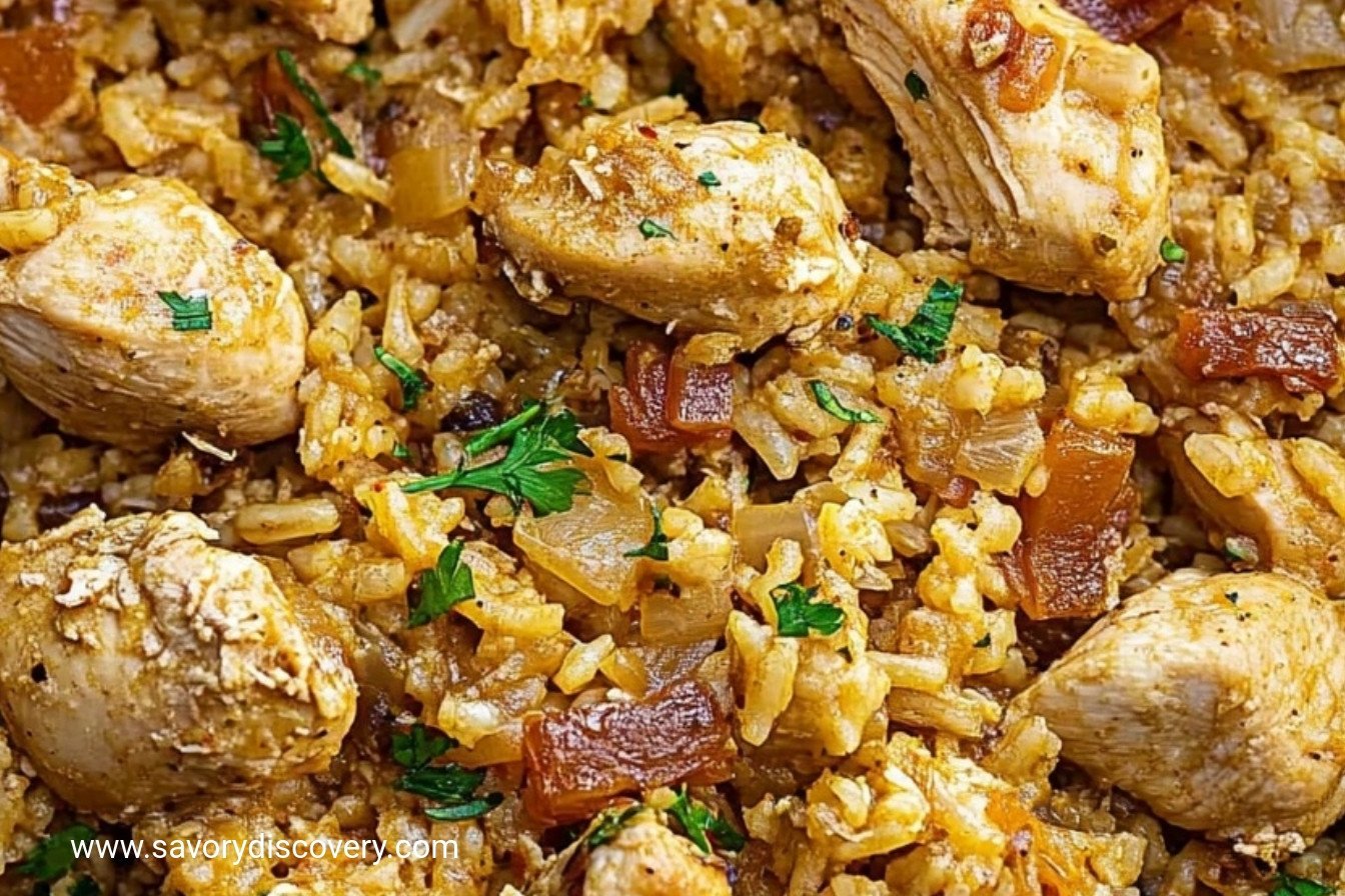 A creamy, comforting one-pan meal featuring tender chicken and perfectly cooked rice in a rich, cheesy sauce.