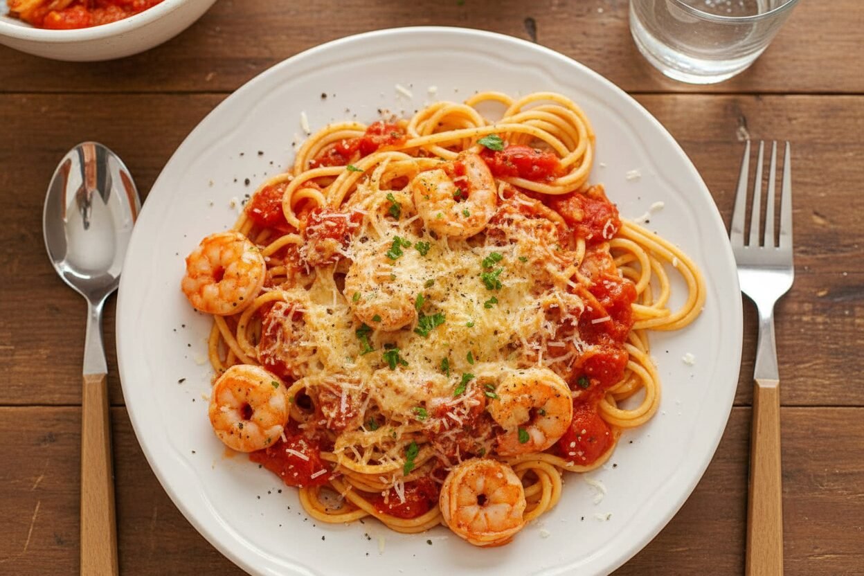 A quick and flavorful pasta dish featuring tender shrimp in a light, fresh tomato sauce.