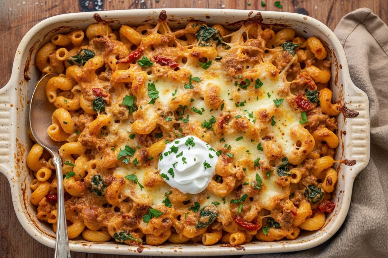 A rich and creamy pasta dish featuring spicy Italian sausage, sun-dried tomatoes, and spinach in a decadent cheese sauce.