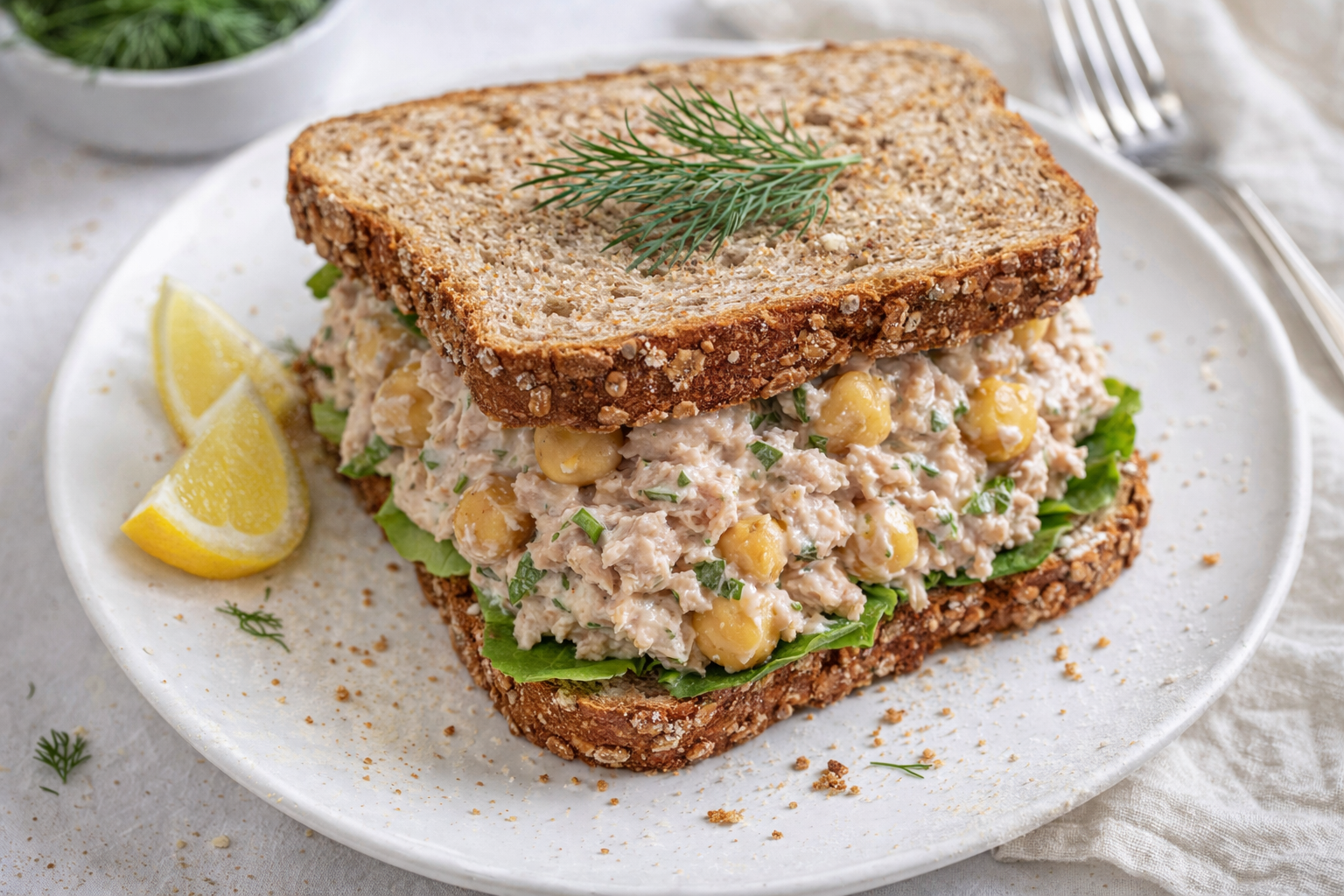 Step 1 Grab a medium bowl. Add the drained tuna and rinsed chickpeas. Break up any big tuna chunks with a fork. Keep it fluffy, not mushy. Step 2 Spoon in the Greek yogurt and lemon juice. Sprinkle salt, pepper, and paprika. Mix gently to coat everything evenly. Step 3 Chop the fresh dill finely. Fold it into the salad. Taste and adjust seasoning if needed. (Hard-learned tip: Pat chickpeas dry with a towel. Prevents watery salad.) What’s the best herb swap for dill? Share below! Cook Time: 0 minutes Total Time: 10 minutes Yield: 4 servings Category: Lunch, Salad3 Twists on Your Tuna Salad