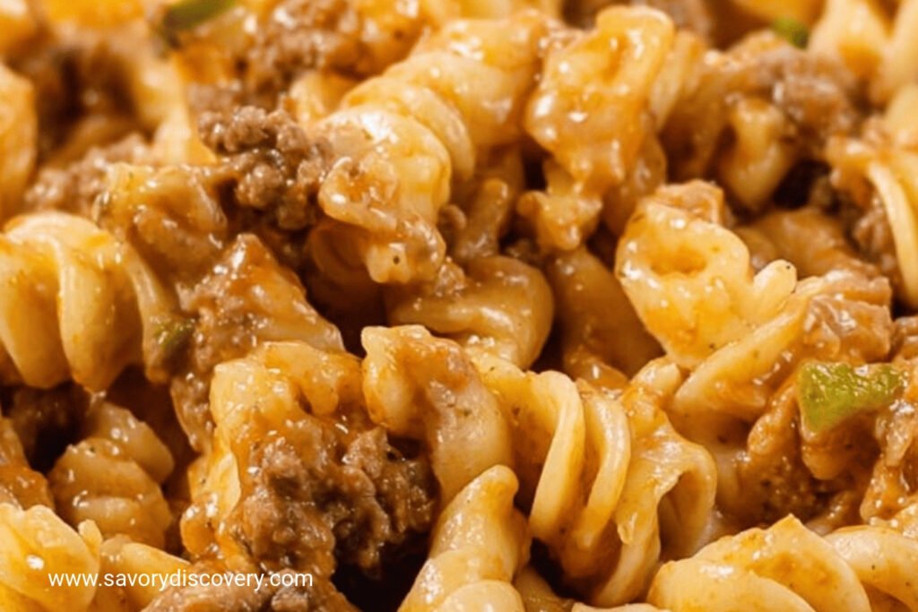Step 1 Start by preheating your oven to 350°F. Cook your rotini pasta as the box says. Drain the pasta and set it aside for later. Now grab a big skillet for the next steps. Step 2 Heat the oil in your large skillet. Add the diced onion and bell pepper. Cook them until they look soft and clear. Then add your minced garlic for two more minutes. Step 3 Put the ground beef and seasoning in the skillet. Cook it all until the meat is brown. Make sure no pink color is left. Drain all the extra liquid from the pan. Step 4 Mix the meat with your cooked pasta. Add both cans of soup and the milk. Stir everything together until it is well combined. (A hard-learned tip: Use a big pot for mixing. It makes everything much easier!). Step 5 Pour your mix into a greased 9×13 dish. Sprinkle the top with paprika and dried parsley. Bake it uncovered for about 25 minutes. It is done when the sides are bubbly. What is the best pasta shape for holding sauce? Share below! Cook Time: 25 minutes Total Time: 40 minutes Yield: 8 servings Category: Dinner, Casserole