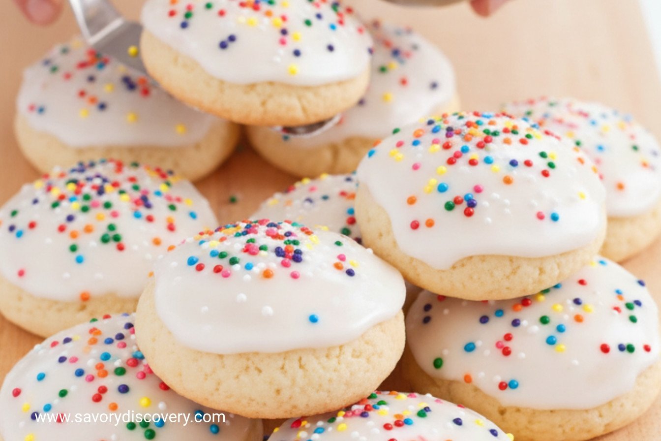 Step 4: Let’s make the glaze. Whisk the powdered sugar, lemon juice, and a bit more anise extract. It should be smooth and pourable. Spread a little glaze on each cool cookie. Add colorful sprinkles right away. (The glaze sets fast, so decorate quickly!) Do you prefer lots of sprinkles or just a few? Share below! Let the glaze dry for 30 minutes. Then they are ready to share.