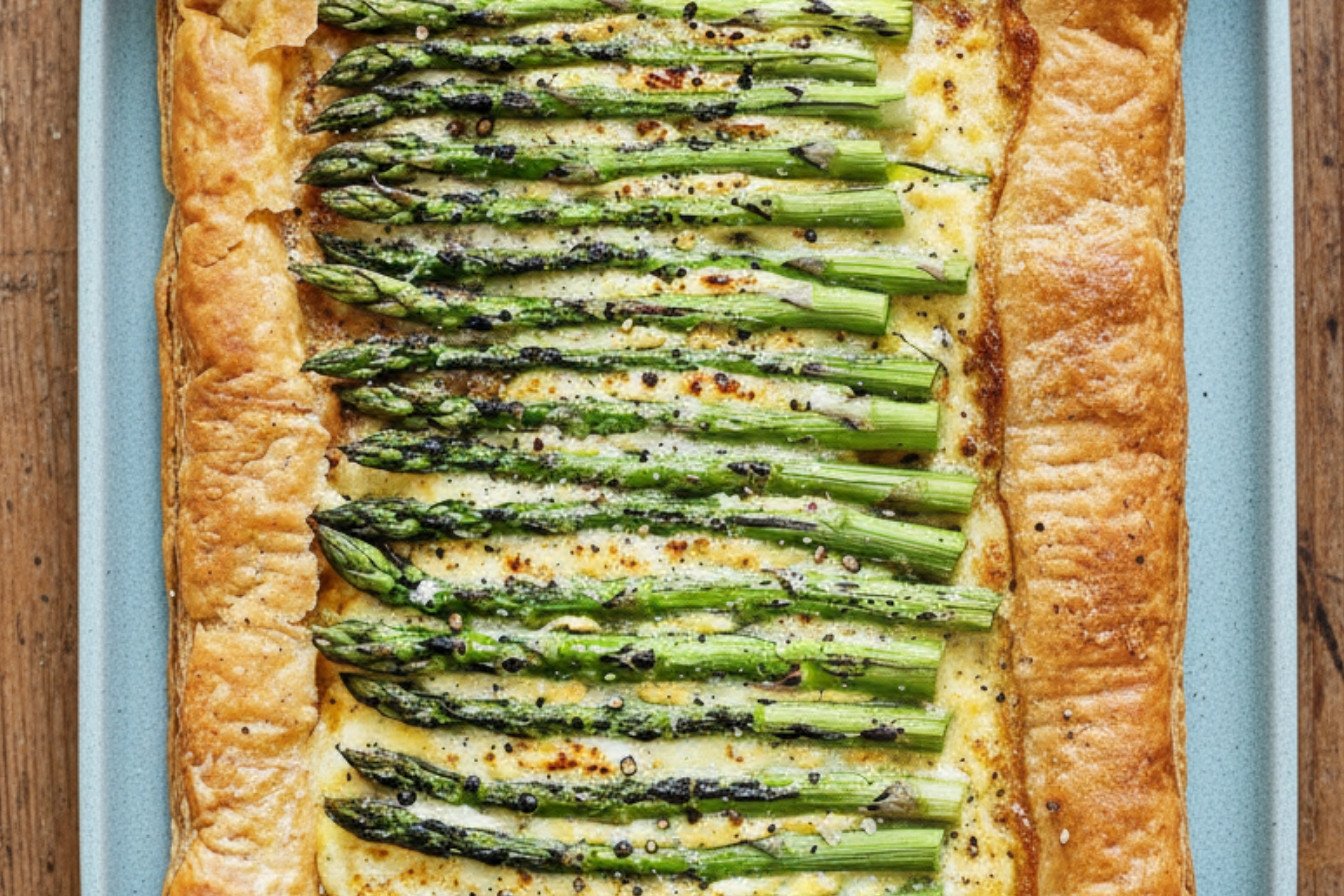 Thaw one puff pastry sheet. Roll it out on a floured surface. Bake it for 15 minutes at 400°F first. Then add your cheesy filling and asparagus. Bake it for 15 more minutes. Let it cool a little before you slice. This pre-baking step is key for a crisp, not soggy, crust.