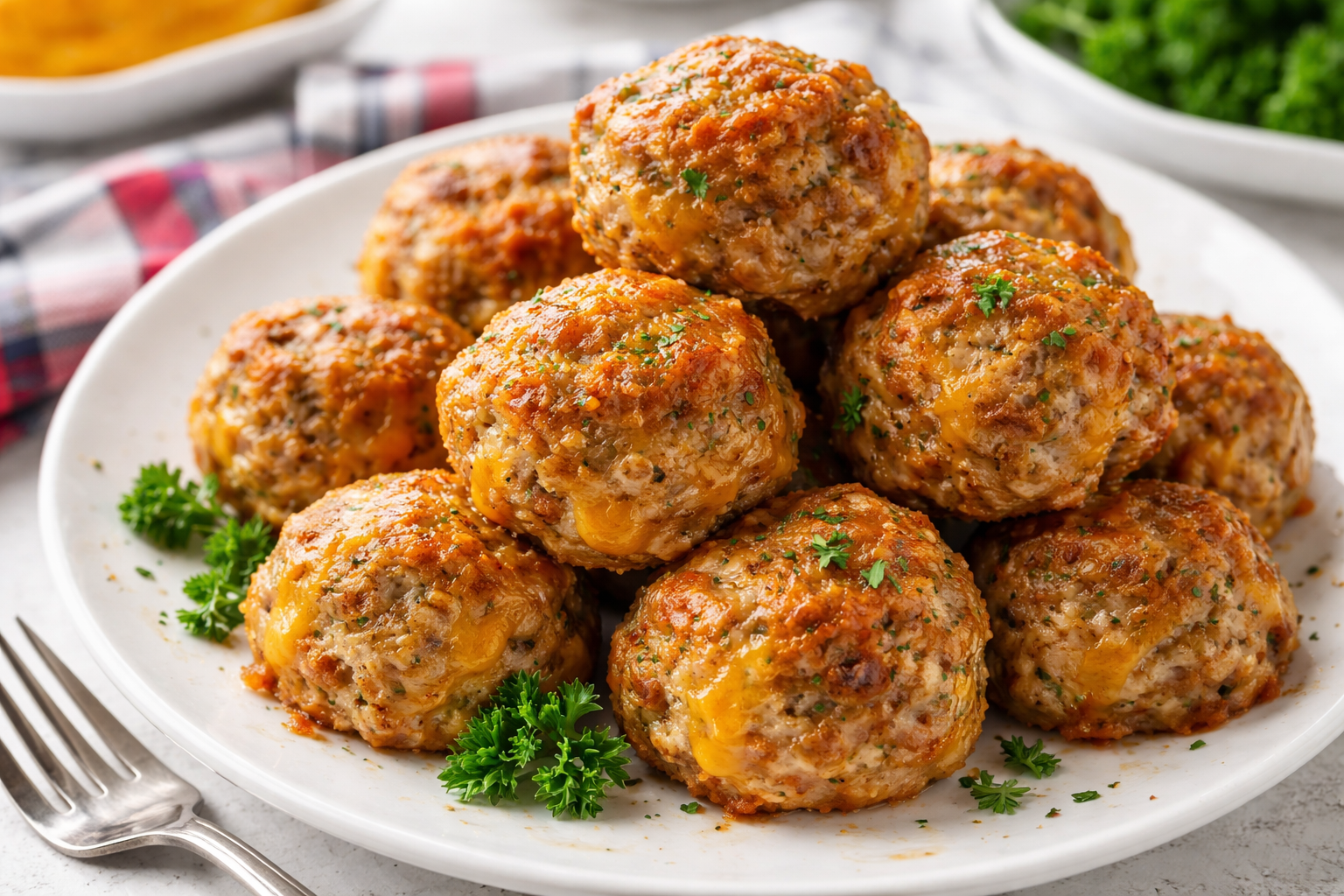 Too dry? Add a splash more milk next time. Dough should stick together easily. Too greasy? Blot cooked balls with paper towels. Use leaner sausage if it happens often. Why this matters: Perfect texture makes these irresistible. Sticking to the pan? Always use parchment paper. No parchment? Lightly grease the sheet. Balls falling apart? Chill the dough for 15 minutes before rolling. Pro tip: Wet your hands to prevent sticking. What’s your biggest sausage ball struggle? Tell me in the comments!