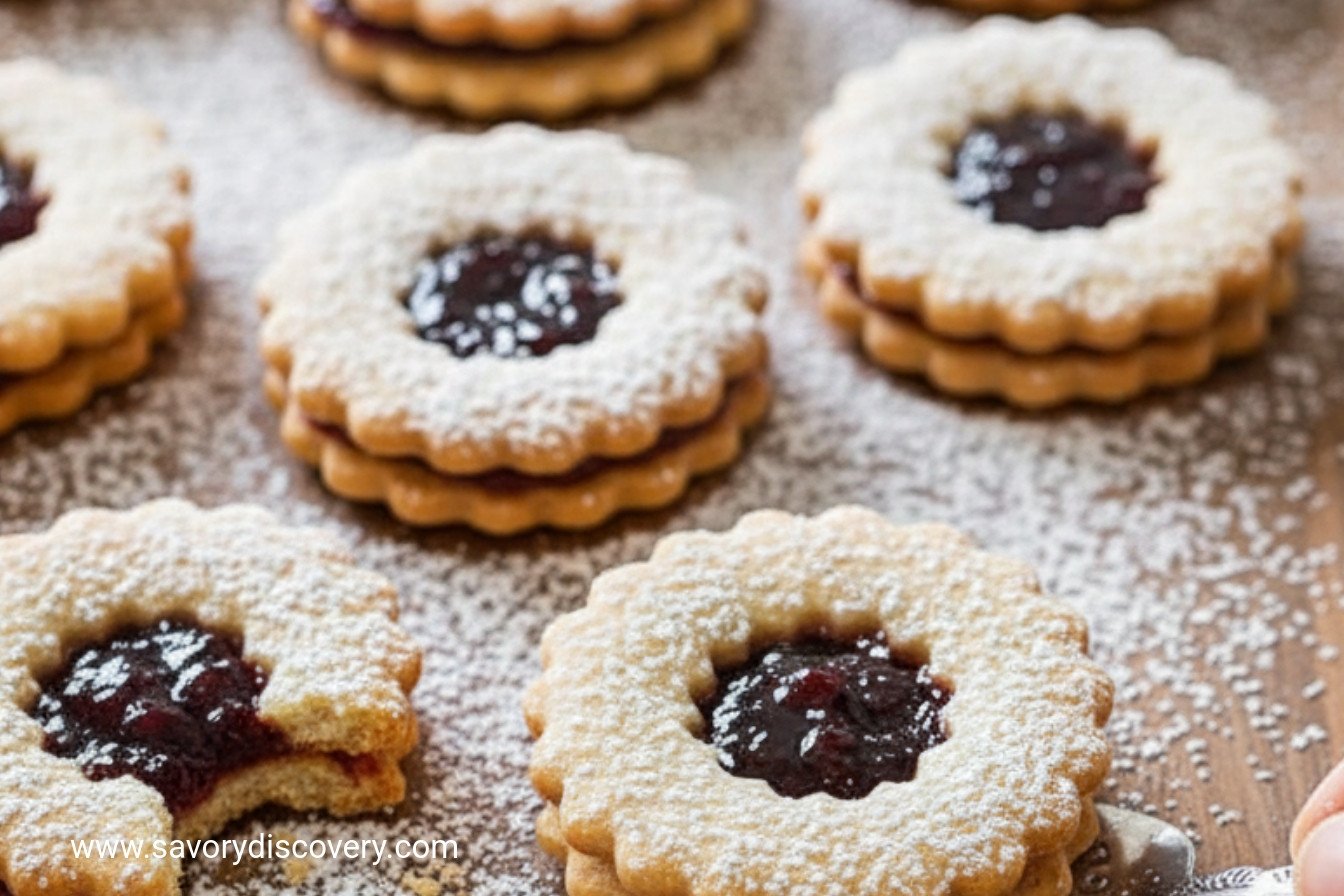 Q: What if I don’t have cherry preserves? A: Raspberry or apricot jam works wonderfully. *Fun fact: Linzer cookies originally used red currant jam!*