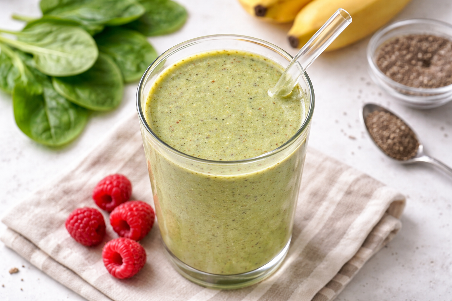 A quick and nutritious smoothie packed with spinach, fruit, and protein for busy mornings.