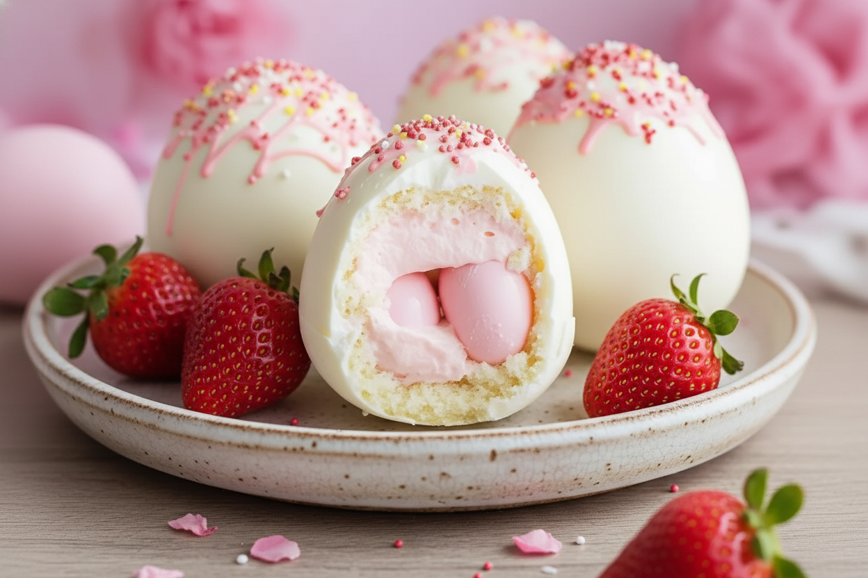 Chef Johns Strawberry Shortcake Chocolate Egg Bombs