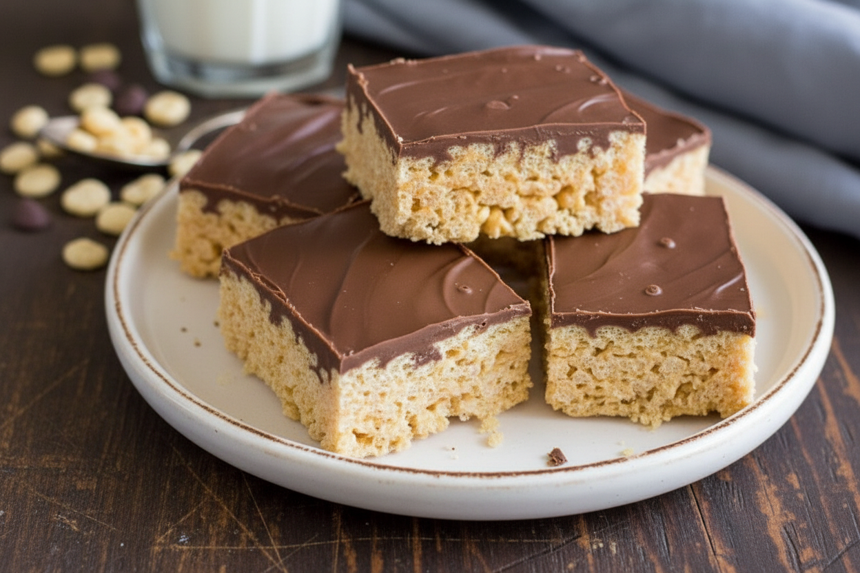 Indulge in the ultimate sweet treat with these Chefs Secret Gooey Peanut Butter Chocolate Crispy Bars. A perfect blend of creamy peanut butter, melted marshmallows, crispy cereal, and a rich chocolate topping.