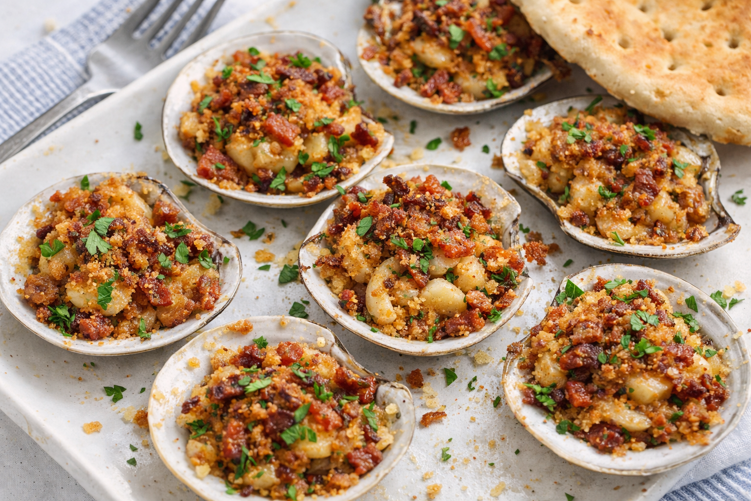 *Fun fact:* This dish is called Clams Casino. It was first made in Rhode Island over a hundred years ago. It was made for a rich man who owned a casino.