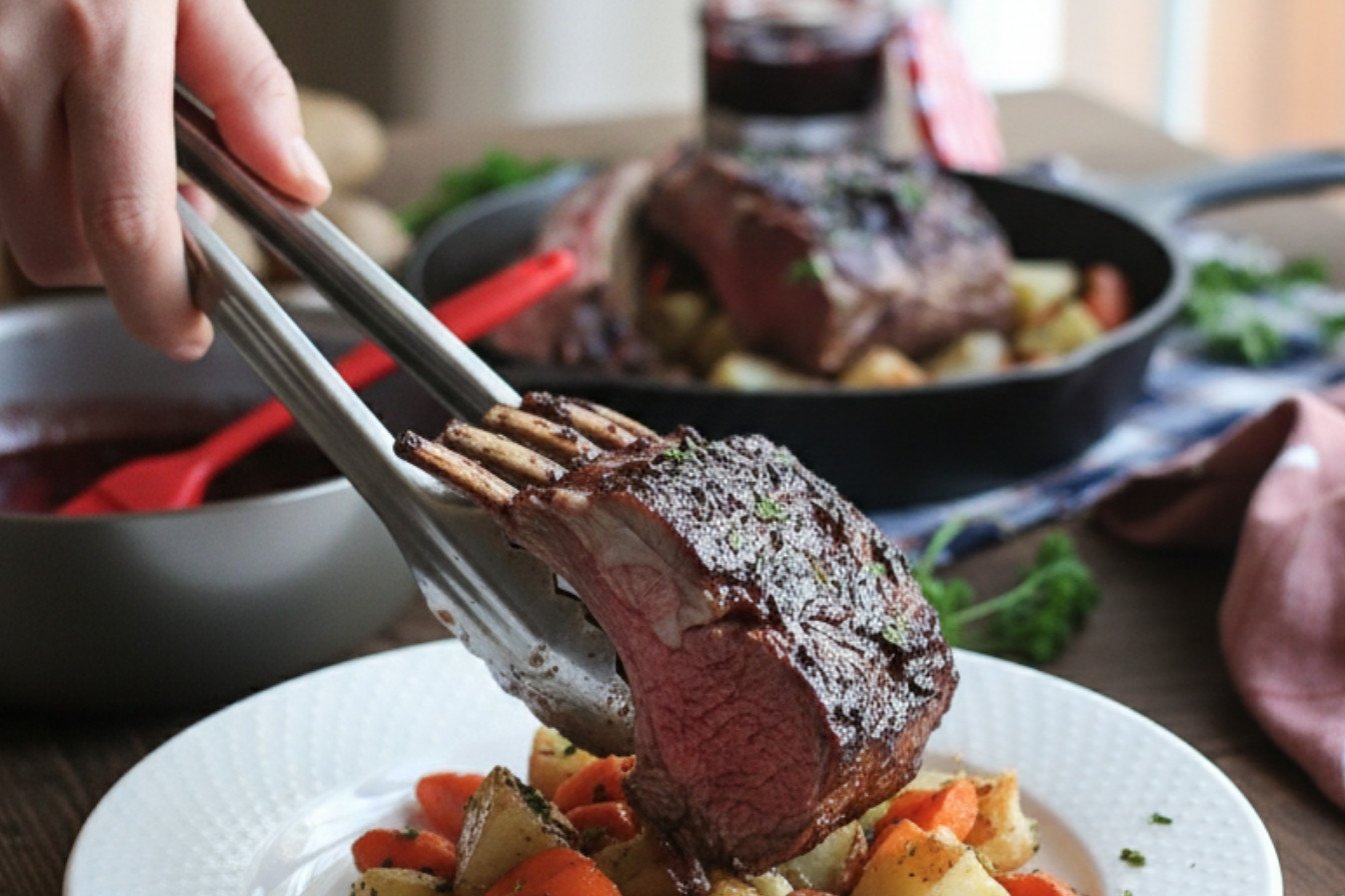 This might seem fancy, but it’s an easy rack of lamb. The secret is the sear. A hot pan gives it a beautiful crust. Then the oven finishes the job gently. The other secret is the cherry and merlot glaze. It’s sweet and rich, but not too sweet. *Fun fact: Lamb is one of the oldest meats people have eaten!* Letting the meat rest matters so much. It keeps all the tasty juices inside. If you slice it right away, the juice runs out. Then your beautiful roast rack of lamb can become dry. Nobody wants that.