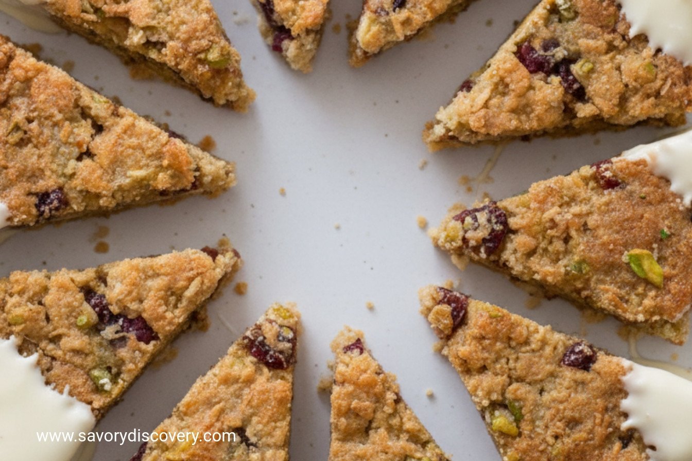 Now, taste is a dance. The cranberries are tart and cheerful. The pistachios are rich and gentle. The coconut is sweet and soft. They all hold hands in the bowl.
