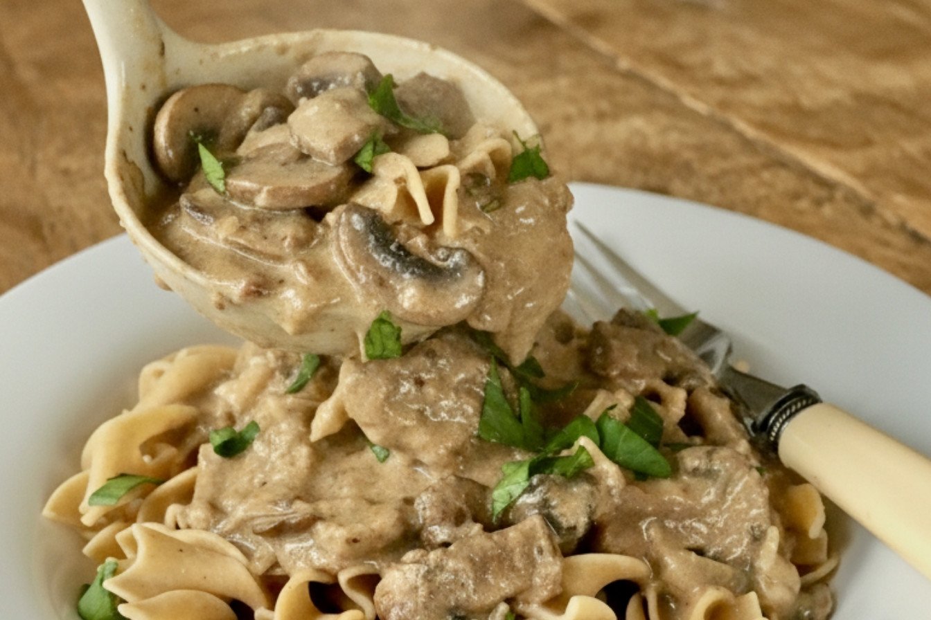 Creamy Beef Stroganoff over Tender Noodles
