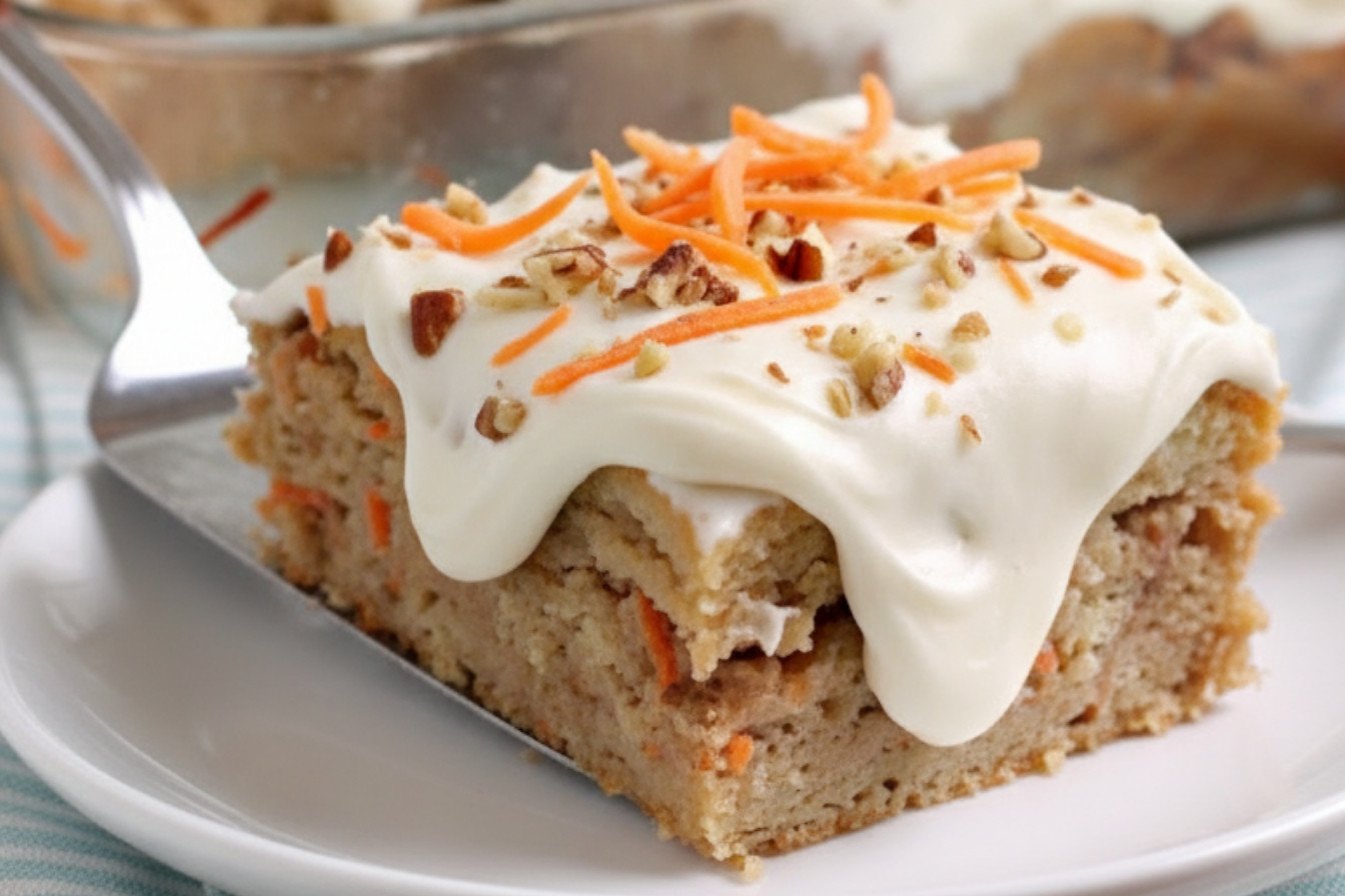 A decadent and comforting dessert that combines the warm spices of carrot cake with the rich, custardy texture of bread pudding, all topped with a luscious cream cheese glaze.