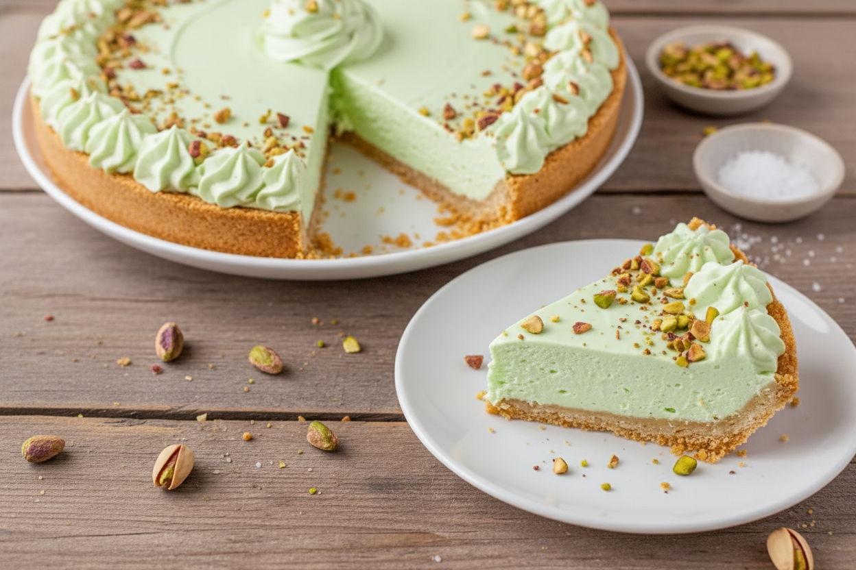 A delightfully creamy and easy no-bake pie with the irresistible flavor of pistachio pudding. Perfect for any occasion.