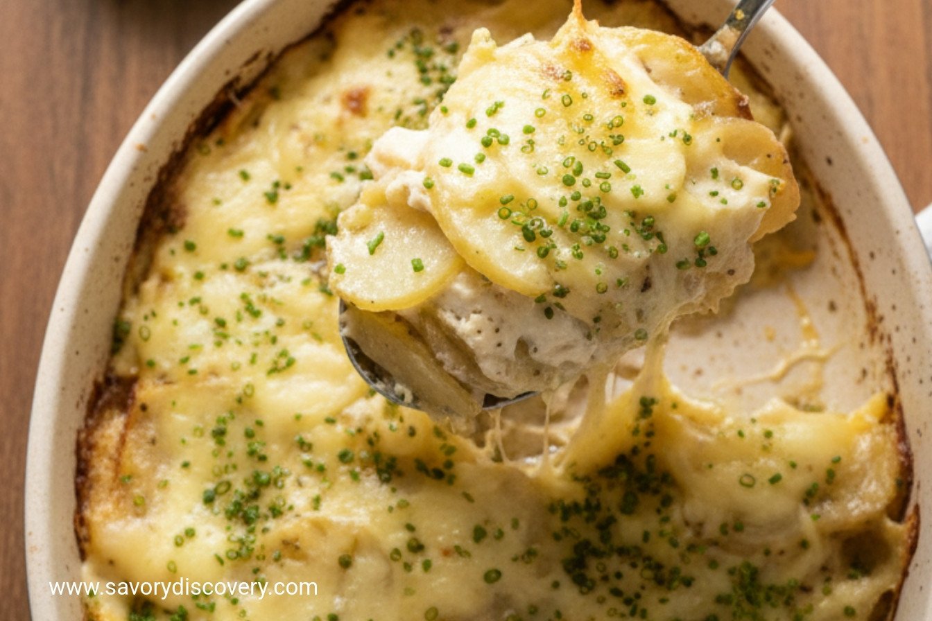 This potato bake is the star of the table. I love it with simple roasted green beans. A bright cranberry salad on the side is perfect. For drinks, a sparkling apple cider feels festive. Grown-ups might enjoy a glass of dry white wine. It all makes the table feel special. Which would you choose tonight?