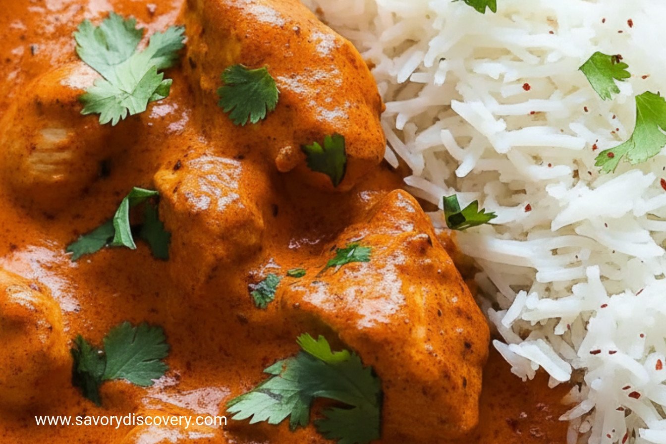 A rich and festive Indian-inspired dish featuring tender chicken baked with tandoori masala, then simmered in a luxurious, spiced tomato and cream sauce.