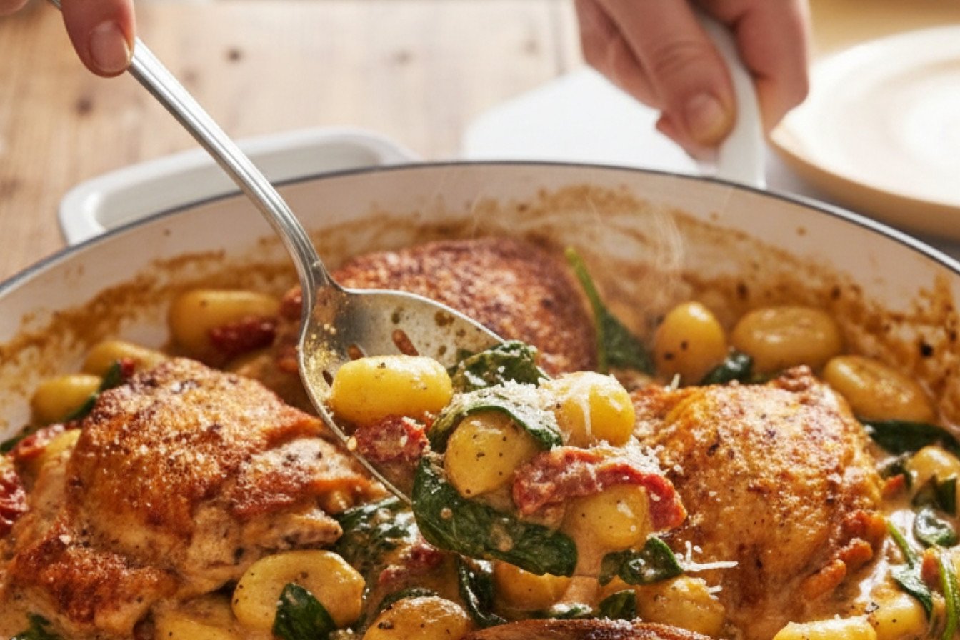 One-Pan Creamy Sun-Dried Tomato Chicken & Gnocchi