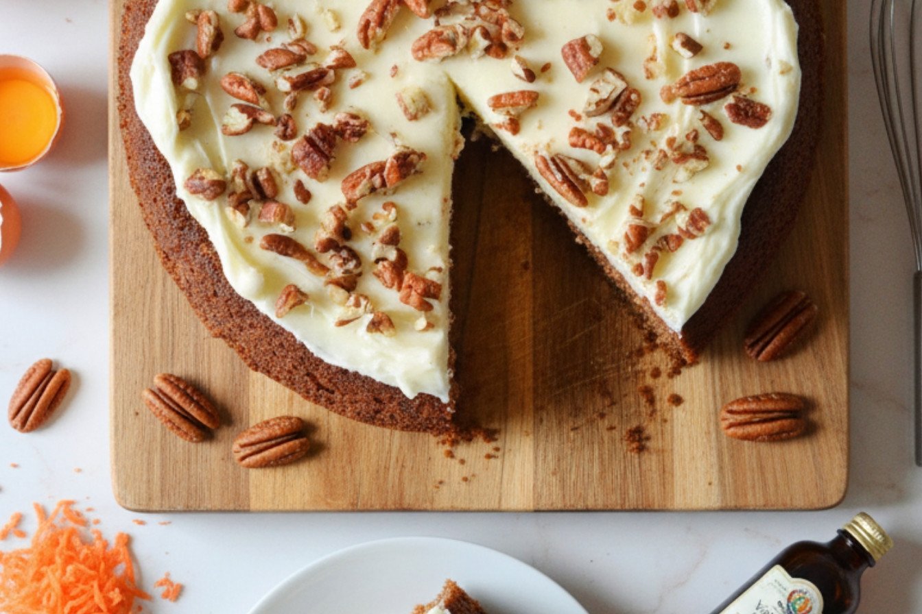 Step 5: For the frosting, beat the soft butter and cream cheese together. Add the vanilla and powdered sugar. If it’s too thick, a splash of cream helps. Frost your cooled cake and sprinkle on toasted pecans. I still laugh at how my grandson always tries to sneak a taste early!