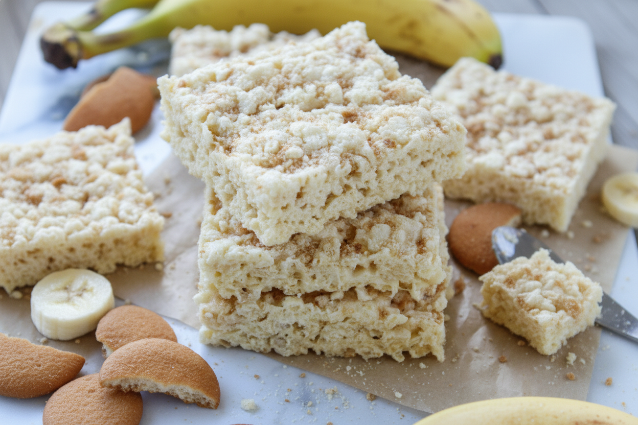 A fun and easy twist on classic Rice Krispies Treats, infused with the sweet, nostalgic flavor of banana pudding and optional Nilla Wafers.