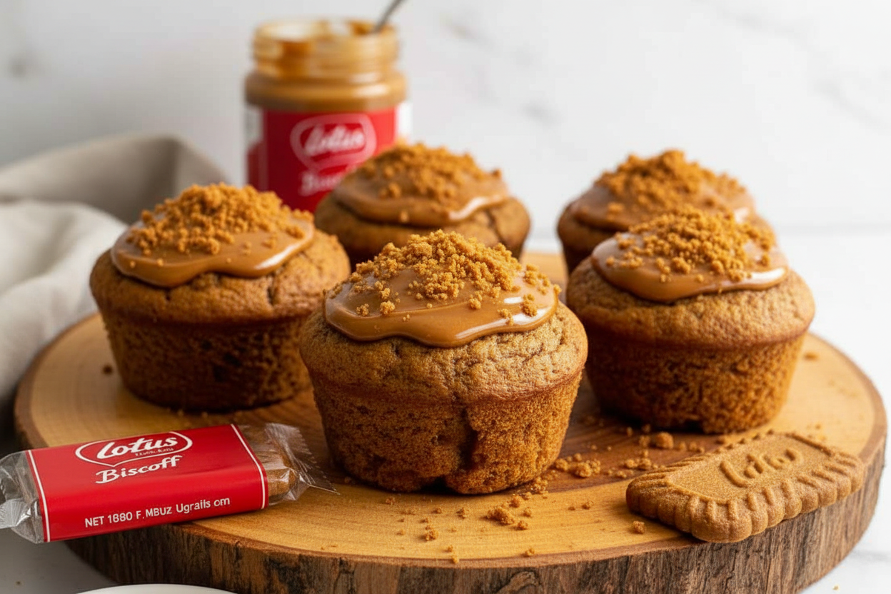 Step 5: Gently turn the cakes out onto a plate. Warm the extra Biscoff spread for 20 seconds. Drizzle that lovely, melted spread all over the warm cakes. For a fun crunch, sprinkle some biscuit crumbs on top right away.