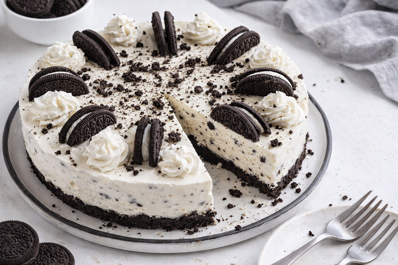 Step 1 Grease a 9-inch springform pan with shortening. Crush 32 Oreos, saving the filling. Mix crumbs with sugar and melted butter. Press into the pan, halfway up the sides. Step 2 Bake the crust at 325°F for 10 minutes. Let it cool fully. Melt saved Oreo filling with white chocolate chips in short bursts. Stir well to avoid burning. Step 3 Whip cream until soft peaks form. Beat cream cheese with the melted chocolate mix. Fold in whipped cream gently. Add chopped Oreos by hand—no mixer here! Step 4 Pour filling into the crust. Chill for 4 hours or overnight. Top with whipped cream and extra Oreos. Slice and serve cold. (Hard-learned tip: Freeze Oreos for 10 minutes before crushing. They crumble cleaner!) What’s your go-to cheesecake topping? Share below! Cook Time: 10 minutes Total Time: 4 hours 15 minutes Yield: 8 servings Category: Dessert, No-BakeTwist It Up