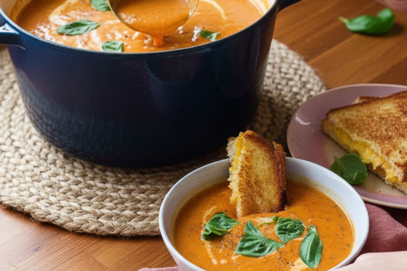 A rich and comforting one-pot soup featuring ripe tomatoes, aromatic basil, and a touch of cream for a velvety finish.