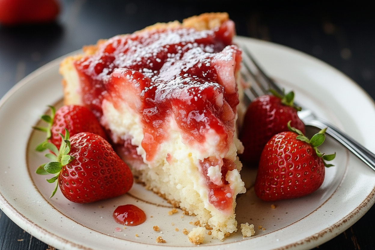 Let’s talk about the layers. First, you get a soft cake base. Then, tangy strawberries and sweet cream cheese. Finally, more cake and berries on top. As it bakes, everything becomes friends. The cake mix soaks up the strawberry juices.