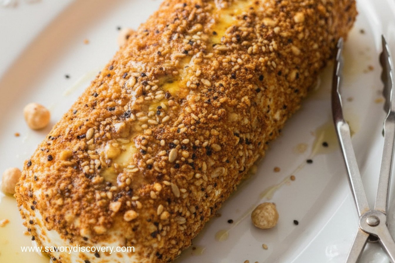 Freezing the cheese log is the secret. It makes it firm. This helps you roll it in the dukkah. The coating will stick to the tacky surface. Do not skip this step.