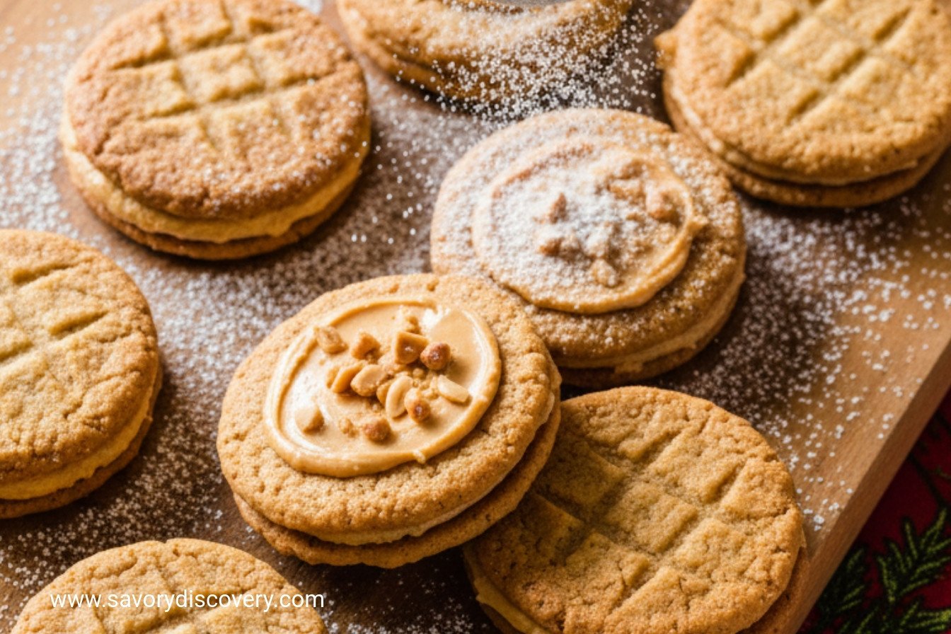 Rich, nutty peanut butter cookies with a creamy peanut butter filling, perfect for festive occasions.