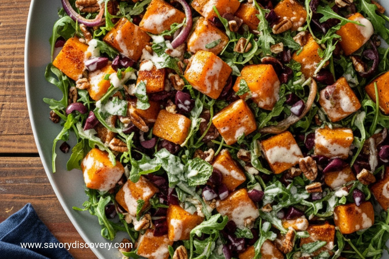 This salad is like a friendly canvas. You can paint it with your favorite flavors. Try swapping the butternut for sweet potato cubes. They roast up just as nicely. Use walnuts instead of pecans for a different crunch. I love their earthy taste. Toss in some juicy pomegranate seeds for a sweet, ruby surprise. They make it so festive. Which one would you try first? Comment below!