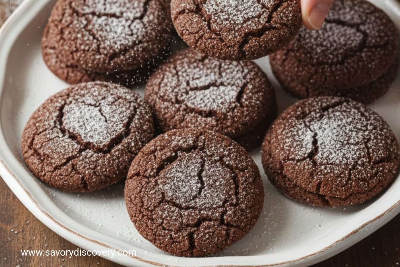 Rich, fudgy chocolate cookies with a crackled, sugar-dusted top.