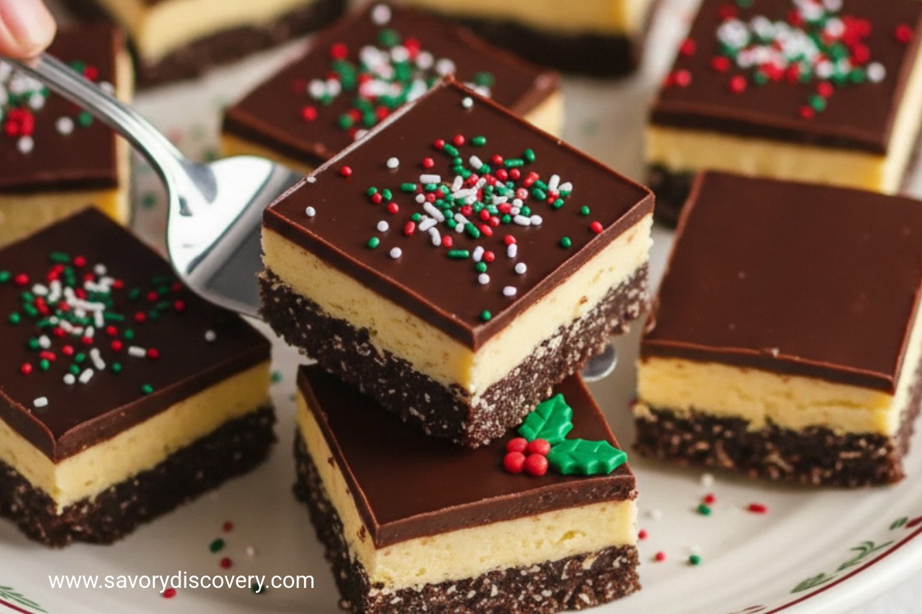 These squares are rich. A small piece is perfect. I serve them on my Christmas china plate. A dusting of powdered sugar looks like snow. They pair nicely with fresh berries. The tartness cuts the sweetness. For a drink, a hot cup of coffee is lovely. The bitterness balances the bar. For the grown-ups, a small glass of cream sherry is nice. It’s sweet and nutty. For the kids, a cold glass of milk is the classic choice. It’s the best combo. Which would you choose tonight?