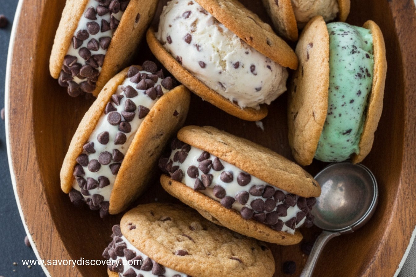Put them on a cold sheet in the freezer right away. This chills them fast. Why does this matter? A firm sandwich is easier to roll in chocolate chips. It keeps everything neat and happy. *Fun fact*: The first ice cream sandwich was sold by a street vendor in New York City over a hundred years ago!