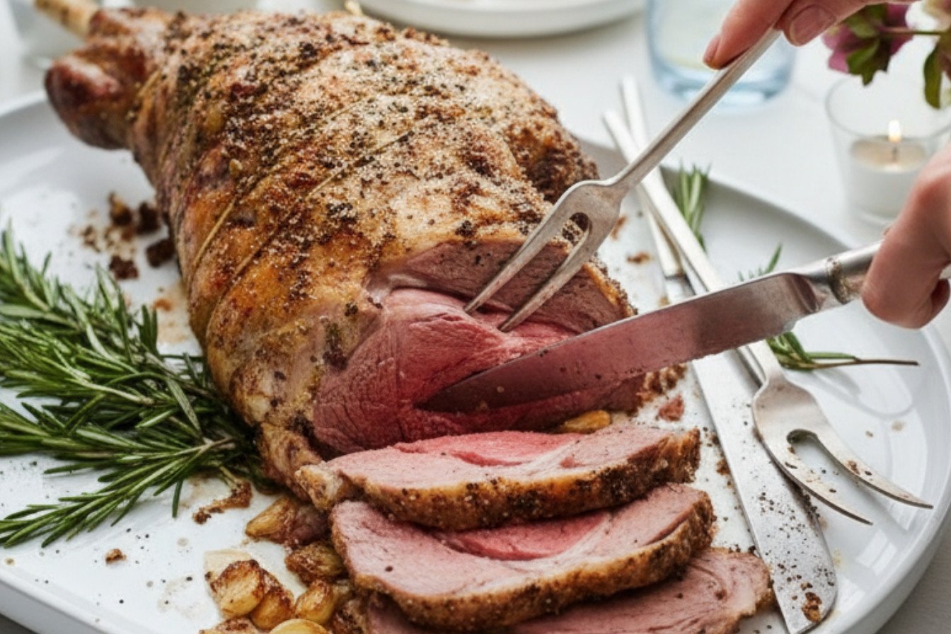 The best way is this garlic and rosemary rub. Make little cuts in the meat. Tuck garlic slivers inside. Rub the chopped rosemary, salt, and pepper all over. This simple seasoning is a classic for a reason. It creates amazing flavor in every bite. This leg of lamb recipe is a favorite for Easter dinner ideas and Passover.