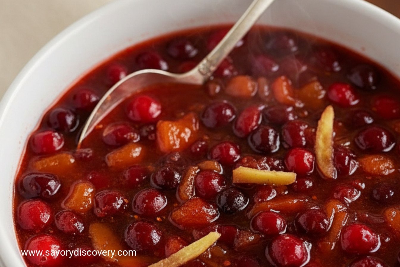 A vibrant and flavorful cranberry sauce with sweet apricot preserves, spicy ginger, and a hint of cayenne for a perfect holiday condiment.