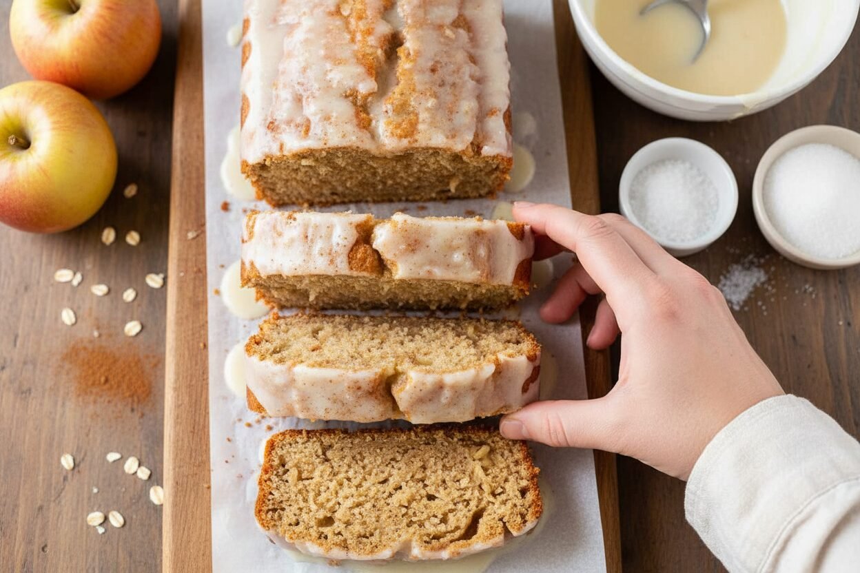 A moist and flavorful quick bread packed with applesauce, oats, and warm cinnamon, finished with a sweet applesauce glaze.