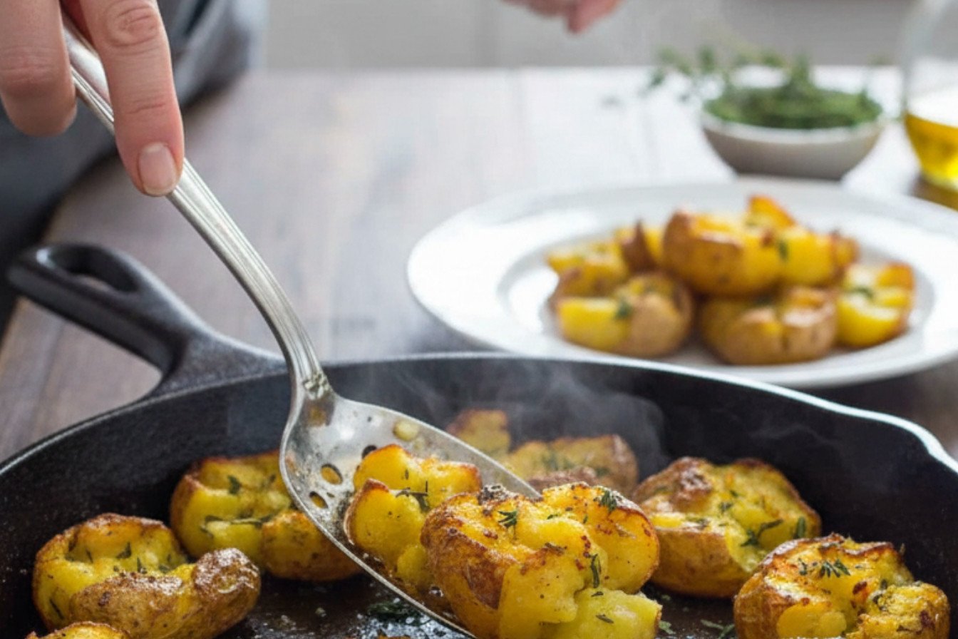 Golden Crisp Smashed Potatoes with Garlic Herbs