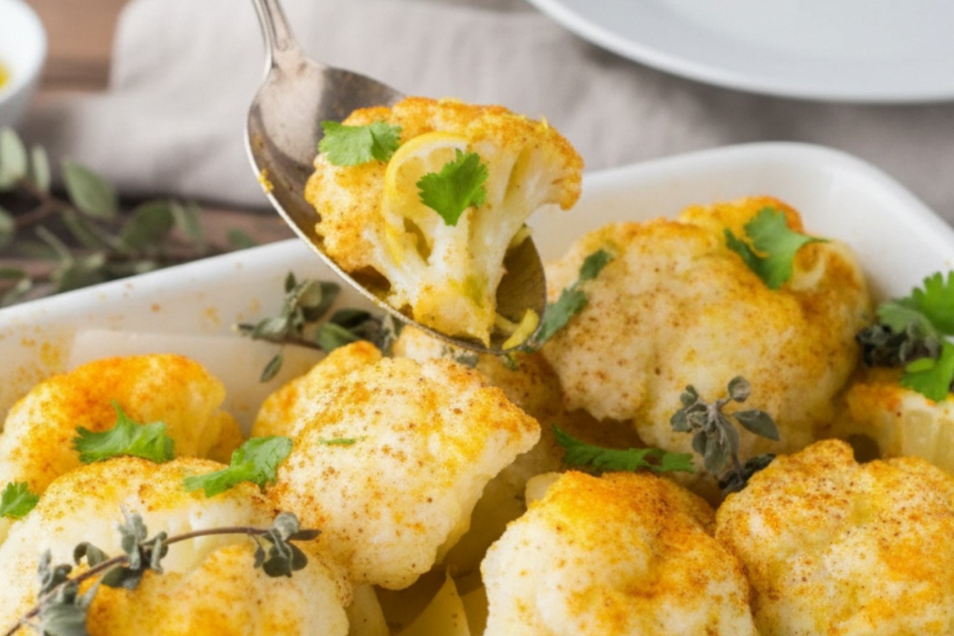 Turmeric Roasted Cauliflower with Garlic and Herbs