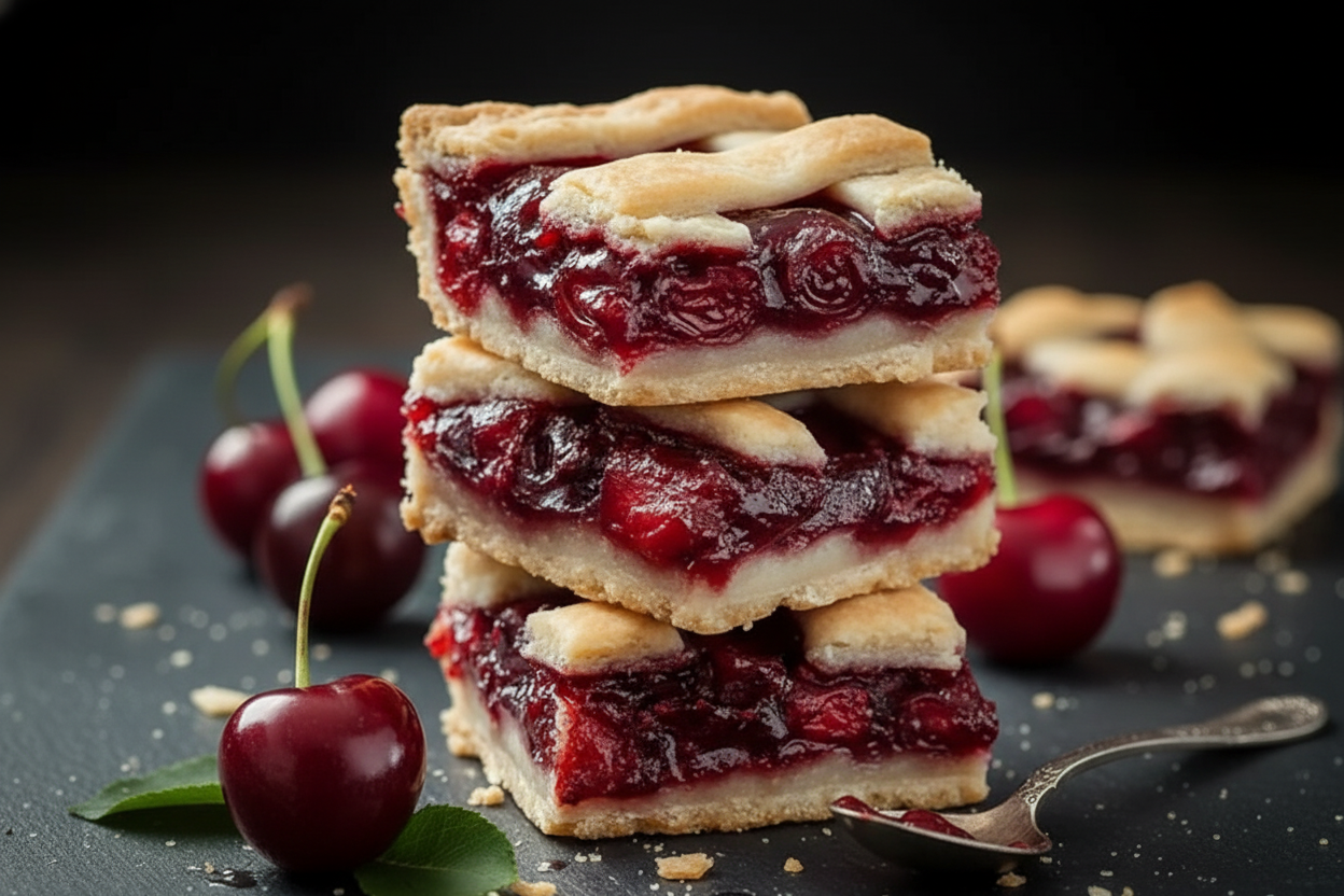 They are my easy, comforting dessert bars. They have a buttery crust and a sweet cherry filling. A simple almond glaze is drizzled on top. They are perfect for sharing with family and friends. They taste like a slice of cherry pie but are easier to serve. *Fun fact: The almond extract makes the cherry flavor taste even brighter and sweeter.*