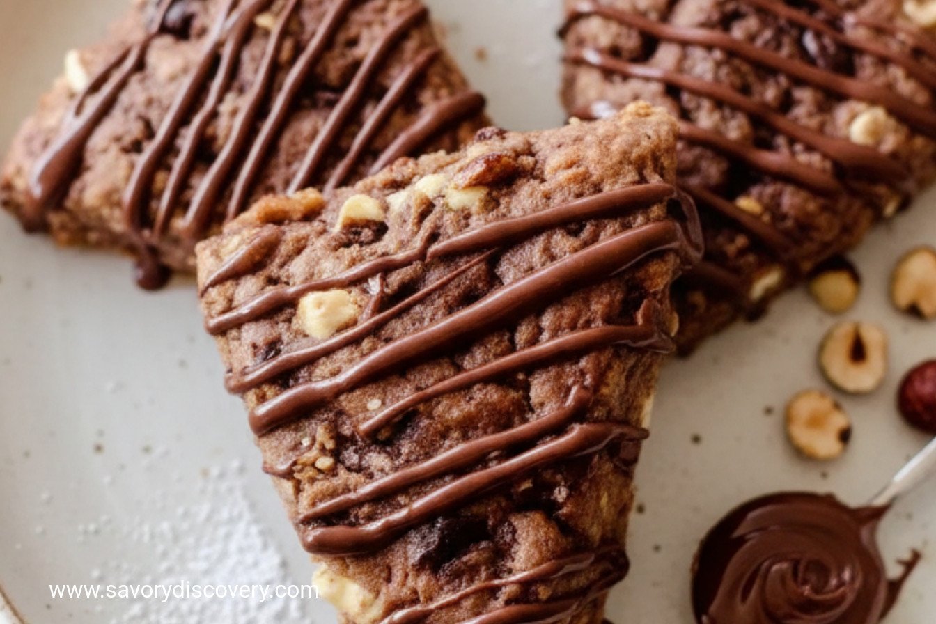 Indulge in rich, chocolatey scones packed with toasted hazelnuts and swirled with Nutella, perfect for a holiday treat or cozy breakfast.