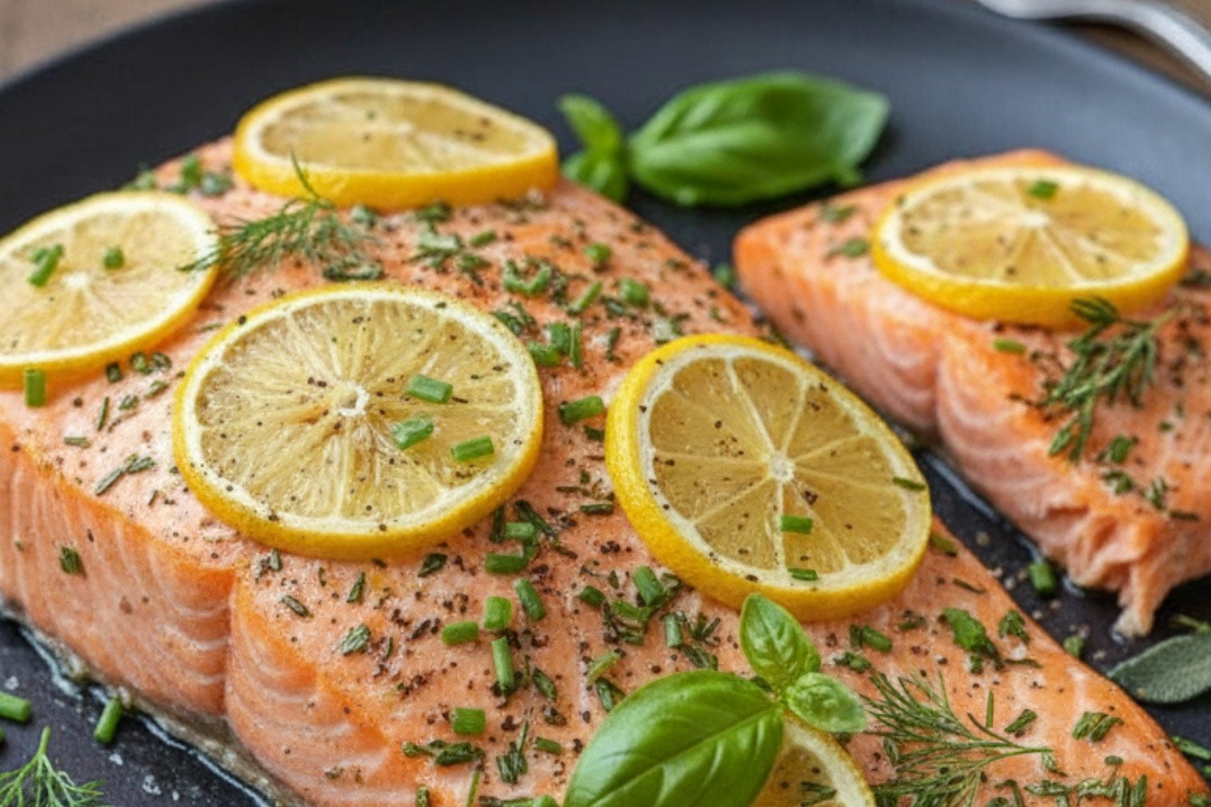 His eyes got big. “It smells like dinner!” he said. I still laugh at that. Now he always helps me pick the herbs. Fresh herbs matter. They give the salmon with lemon and herbs a bright, happy flavor. Do you have a favorite herb?
