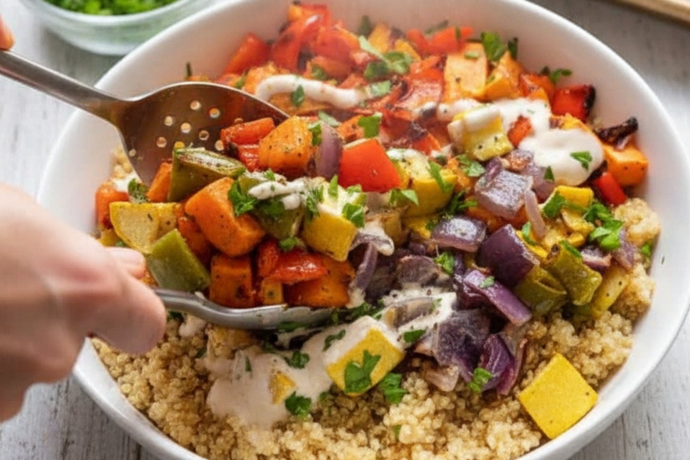 Healthy High-Fiber Quinoa Bowl with Roasted Veggies